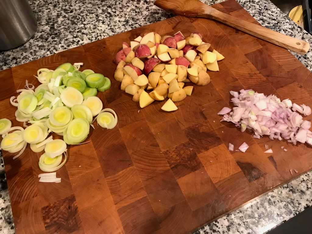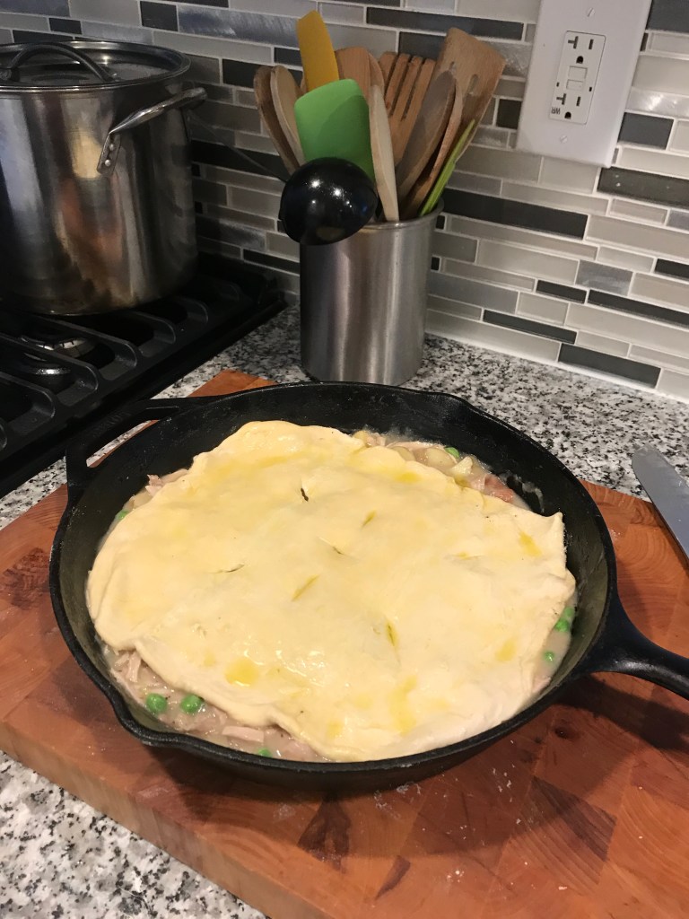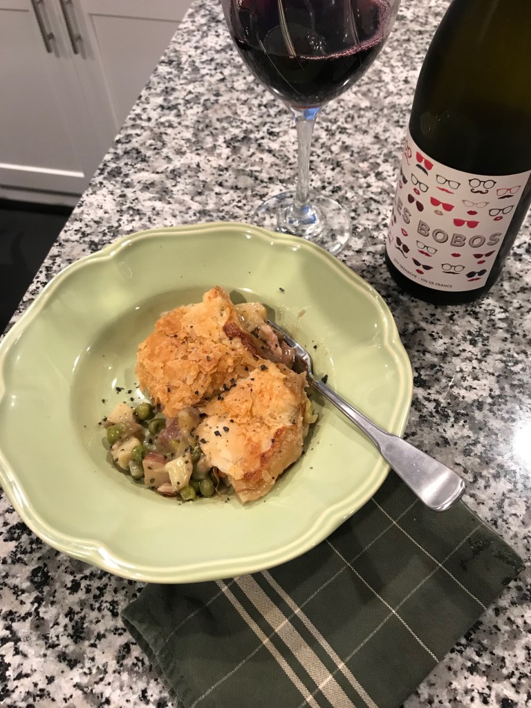 After making the stock featured in the last post, it was pot pie time. This one comes together pretty easily because I used store-bought frozen puff pastry rather than making the crust from scratch.
