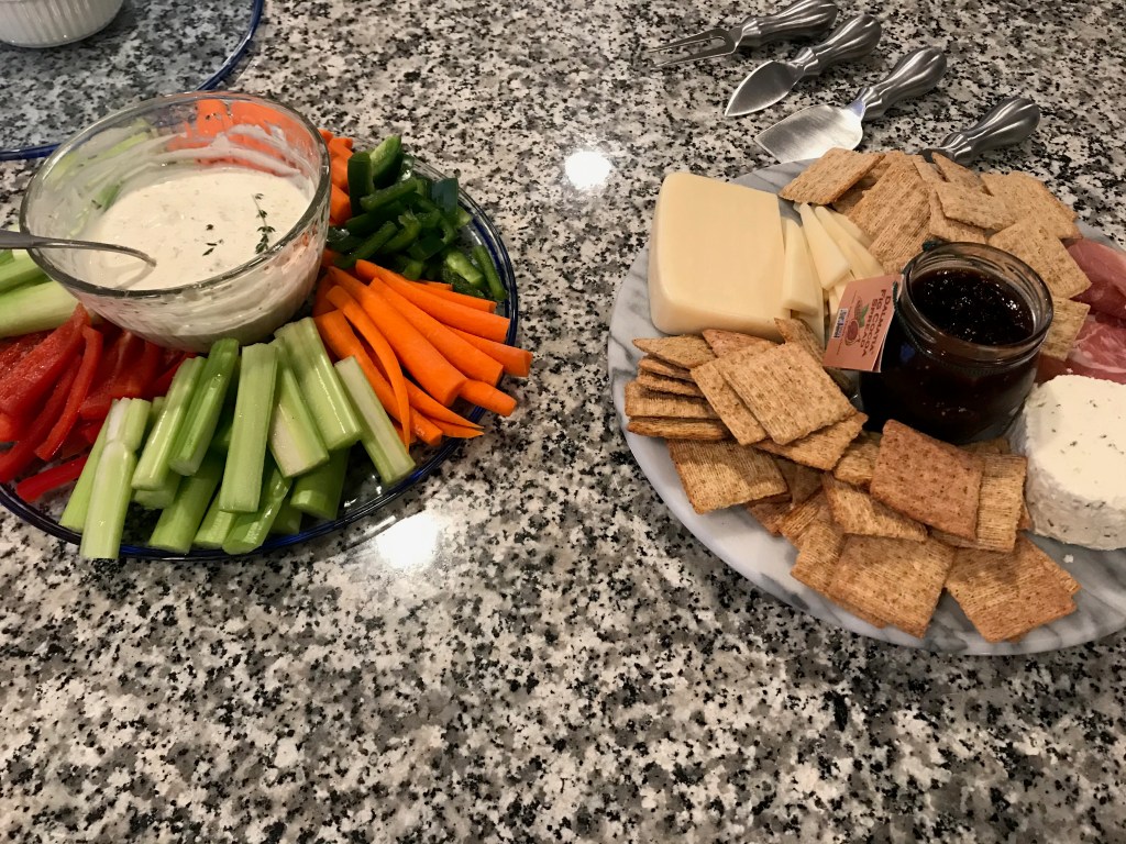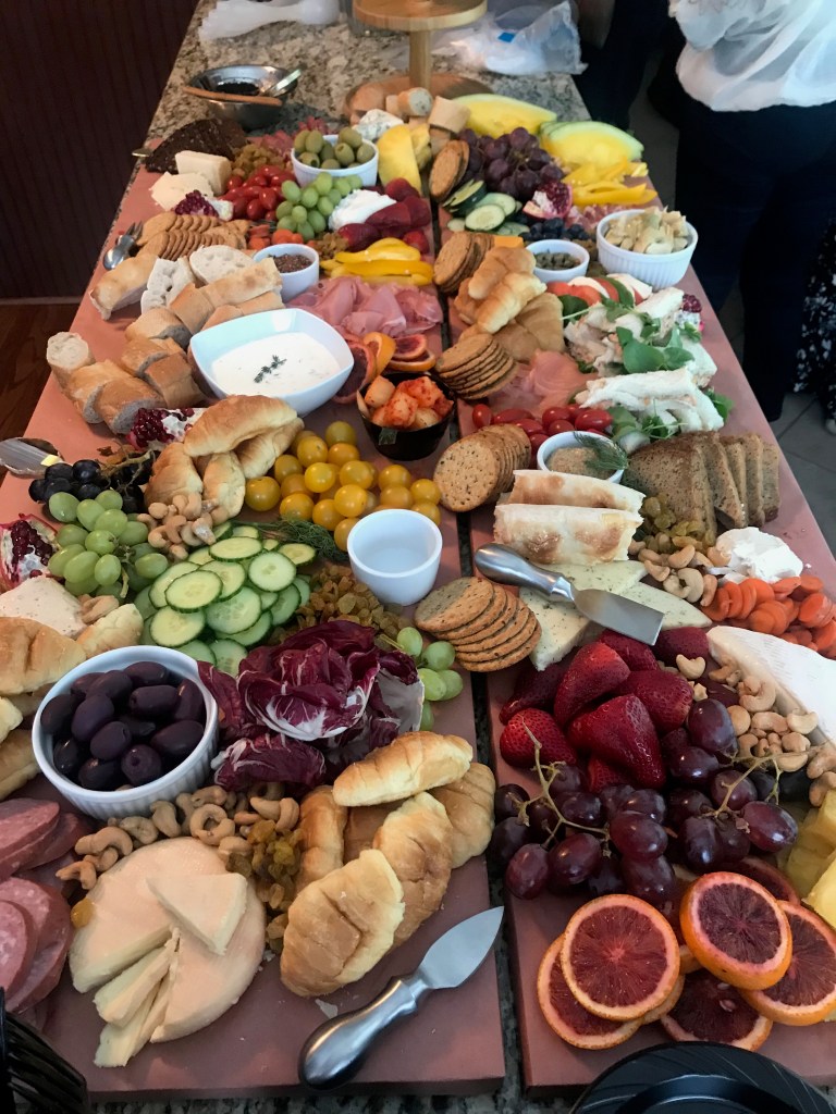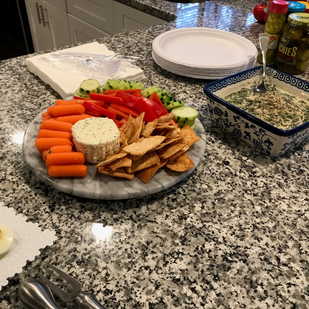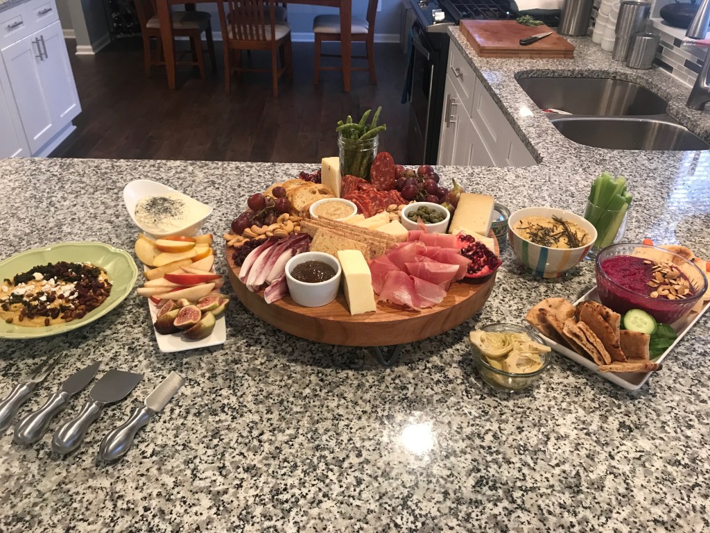 I enjoy supplementing the board with other items, depending on the nature of the event. Hummus varieties, onion dips, baked brie, spinach dip, lemon-thyme veggie dip, deviled eggs. You will see some of this in the photos, as well.