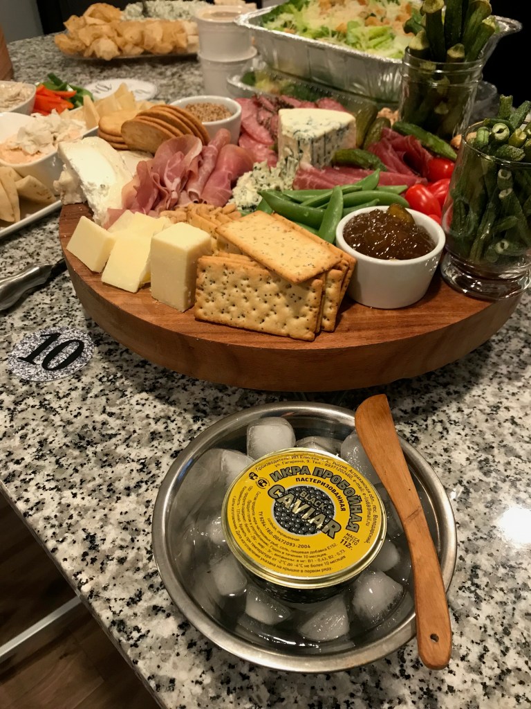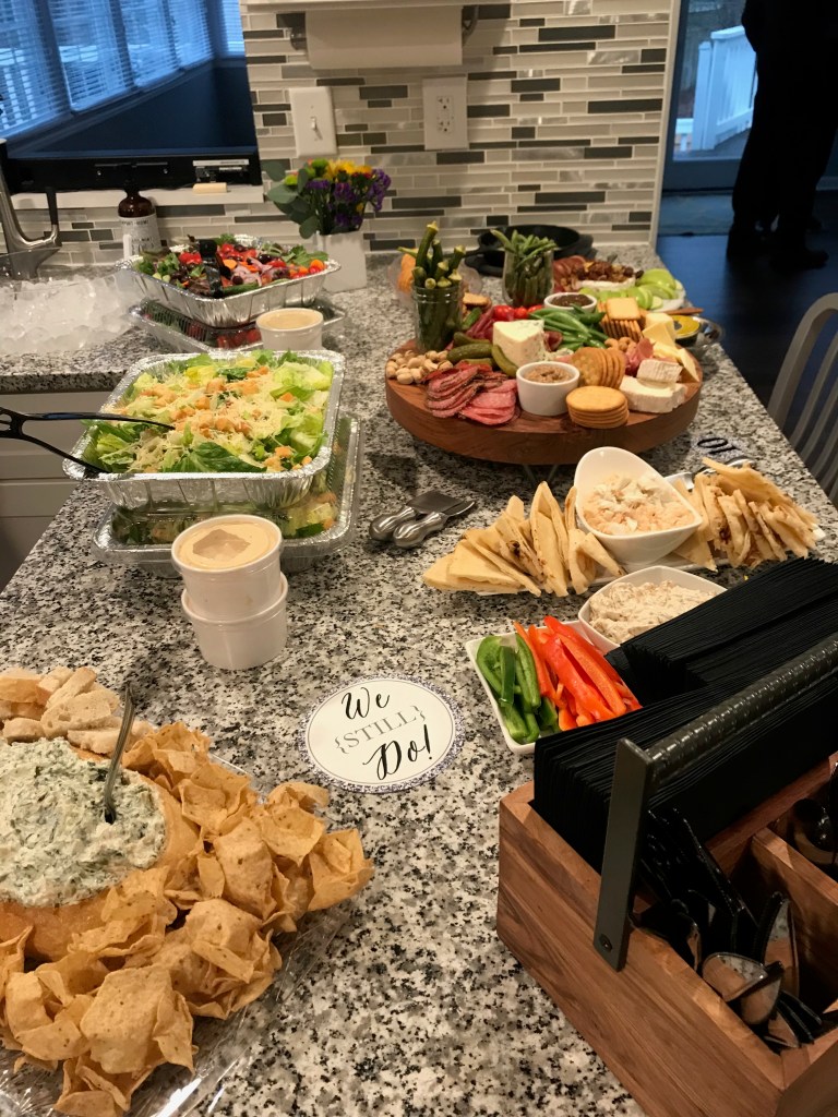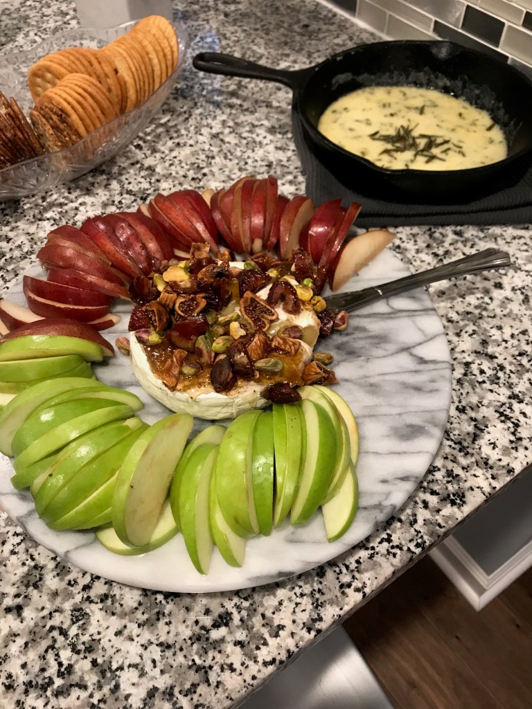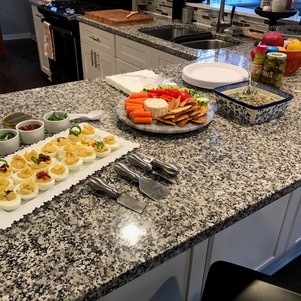 I enjoy supplementing the board with other items, depending on the nature of the event. Hummus varieties, onion dips, baked brie, spinach dip, lemon-thyme veggie dip, deviled eggs. You will see some of this in the photos, as well.